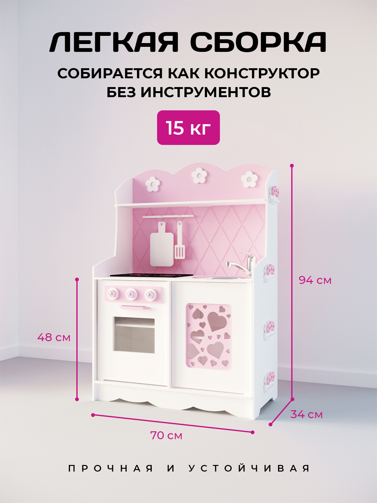 В собранном виде кухня очень устойчивая. Уронить её сложно даже взрослому человеку.