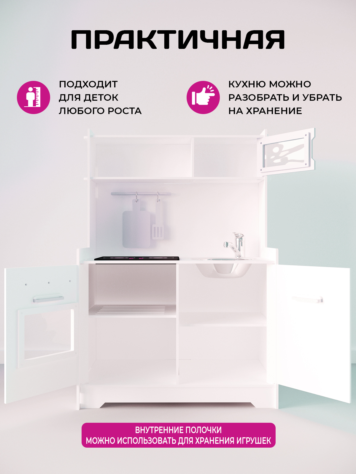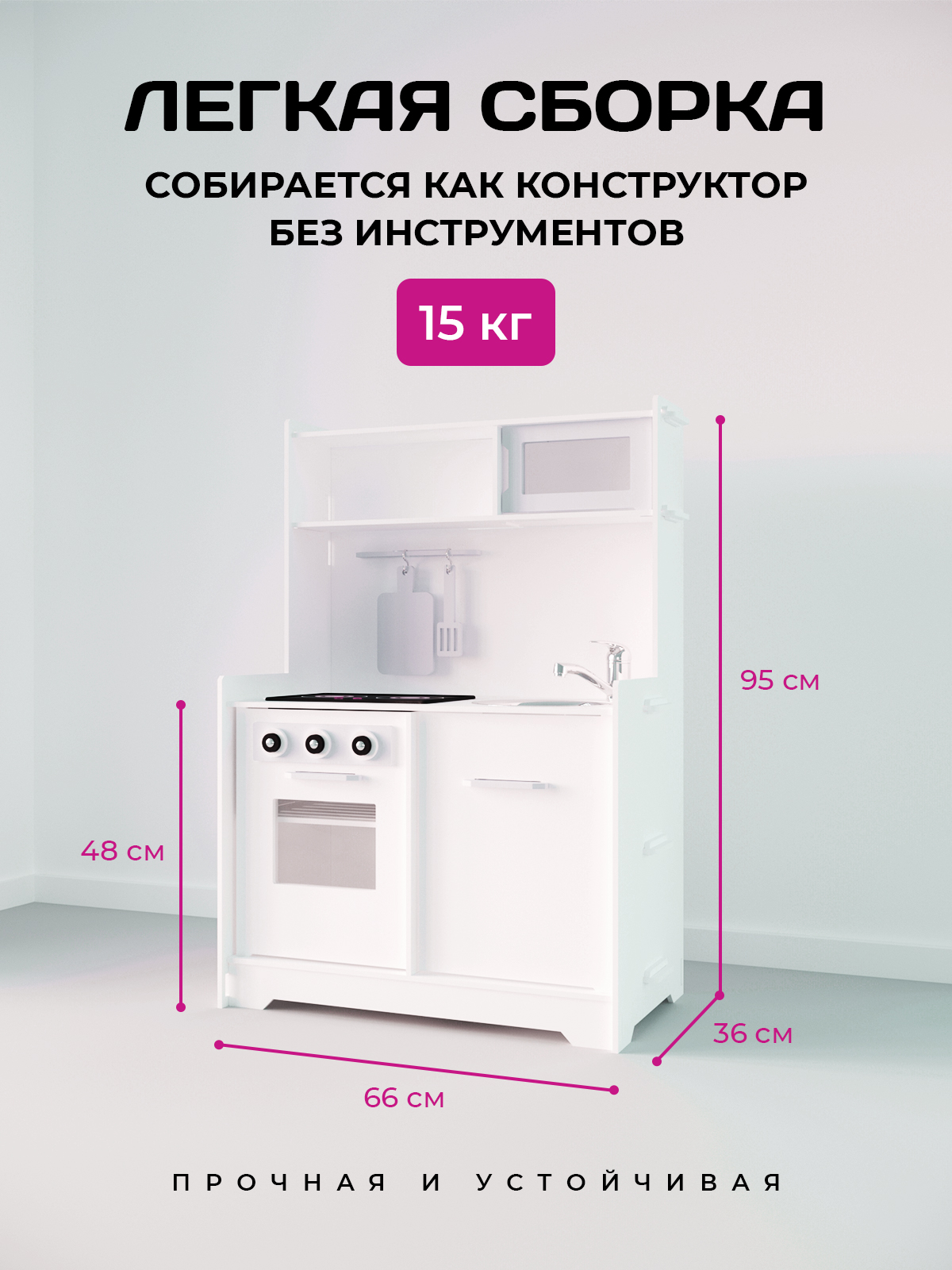 В собранном виде кухня очень устойчивая. Уронить её сложно даже взрослому человеку.