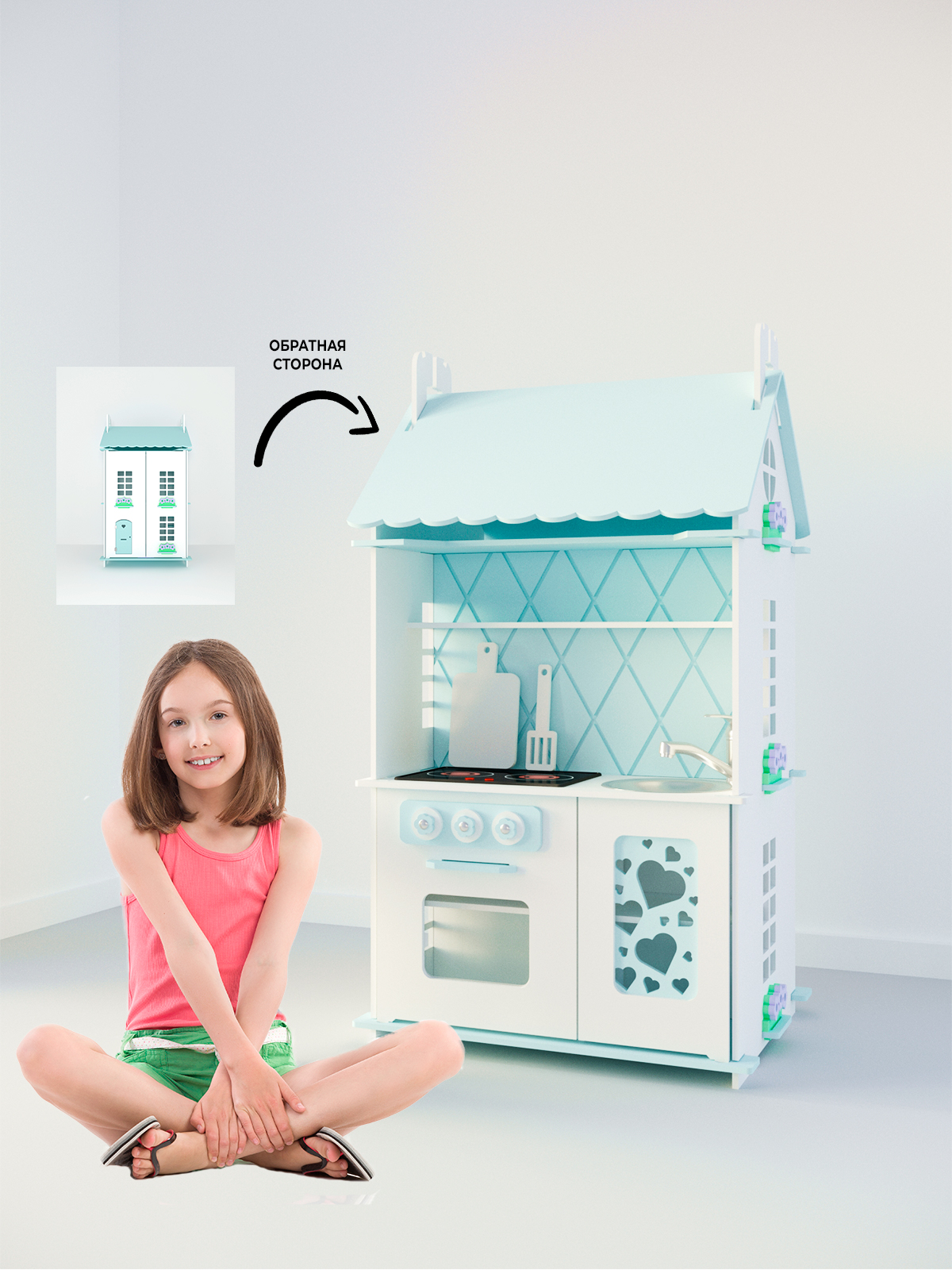 Уникальная игрушка 2в1. С одной стороны - кухня, а со второй - кукольный домик!